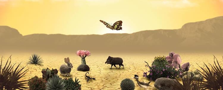Explore the arid Southwest for a chance to win a hot payout in the 5-reel, 25-line slot Desert Kingdom. Most people avoid the predators that lurk about here, but consider yourself lucky if you stumble across some big game. Mountain lions pay up to 2,500 coins if you line up enough of them. Falcons, desert foxes and lizards also pay a pretty penny when spotted in packs, so keep an eye out for these tough desert residents. If you thought the only plants you'd see here are cacti – you thought wrong. Sunflowers grow wild and substitute for all symbols except scatters.